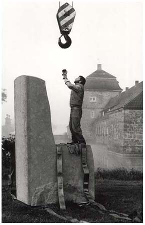 Der Bildhauer Christoph Wilmsen-Wiegmann wurde 1956 in Kalkar am Niederrhein geboren. Er lebt und arbeitet seit 1986 auf dem Niederheeshof in Kalkar-Appeldorn. Auf der Suche nach der Kulturgeschichte des Steines bereist er Europa, Nordafrika und Mittelamerika. Schon in der Zeit seines Archäologiepraktikums in Xanten, seines Studiums in Krefeld und seiner bildhauerischen Wanderschaft über Düsseldorf, Bad Münster am Stein hin zu den Steinbrüchen Italiens (1976 bis 1983), entwickelt sich sein plastisches Konzept: Säule, Pfeiler, Tor, Kugel, Schale, Diskus, Brunnen, Monolithe, Kuben, Lichtsteine und Steinreihungen bilden übergreifende Raumkonzepte in der Besetzung von Punkten und Strecken im Landschafts- oder Bebauungszusammenhang. Er betont das Körperhafte in Strenge: Volumen, Grate, Schwellung, Bruchkanten, Spiegelflächen. Er bringt den Stein auch oft dahin, dass ihn das Licht durchdringt. In Stelen führt er z.B. beidseitig konkave Höhlungen der Außenschichten, so nahe aneinander heran, dass sich das Undurchdringliche in Durchlässigkeit wandelt. Seit 1982 Arbeiten im öffentlichen Raum und in Sammlungen, u.a. Museum Schloß Moyland - Sammlung van der Grinten / Mönchehaus Museum für moderne Kunst in Goslar (Kaiserringstipendium 1994) und im Israel Museum in Jerusalem.